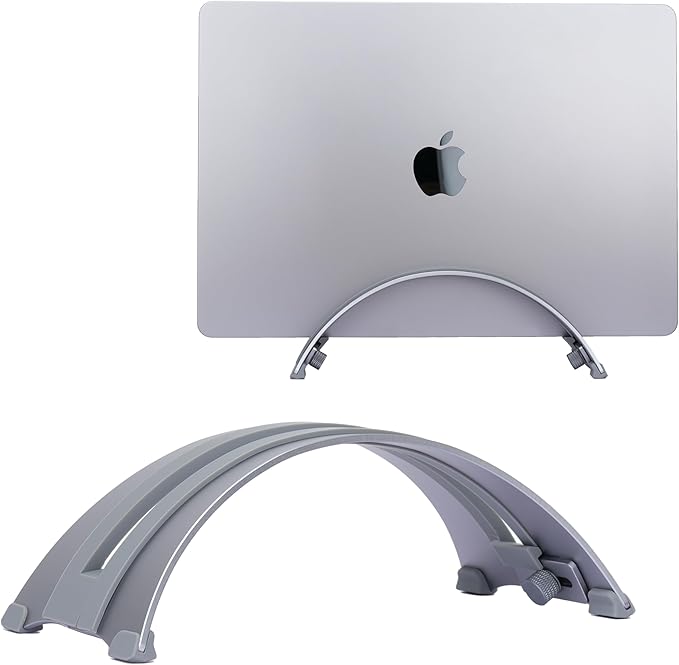 Adjustable Vertical Laptop Stand - 6061 Aluminum, CNC Precision, Anodized Finish, Fits All Laptops Including 17-inch, Ventilated Design, Anti-Slip Silicone Pads, ARC Shaped Stands