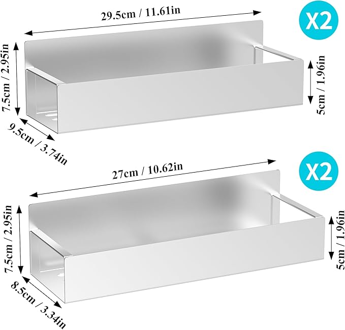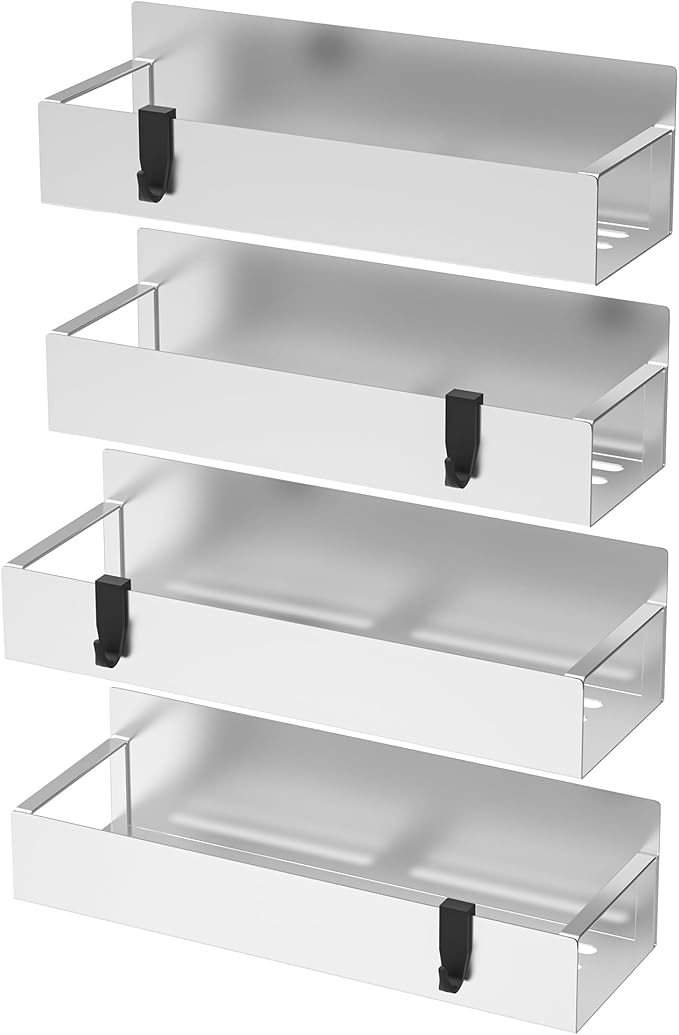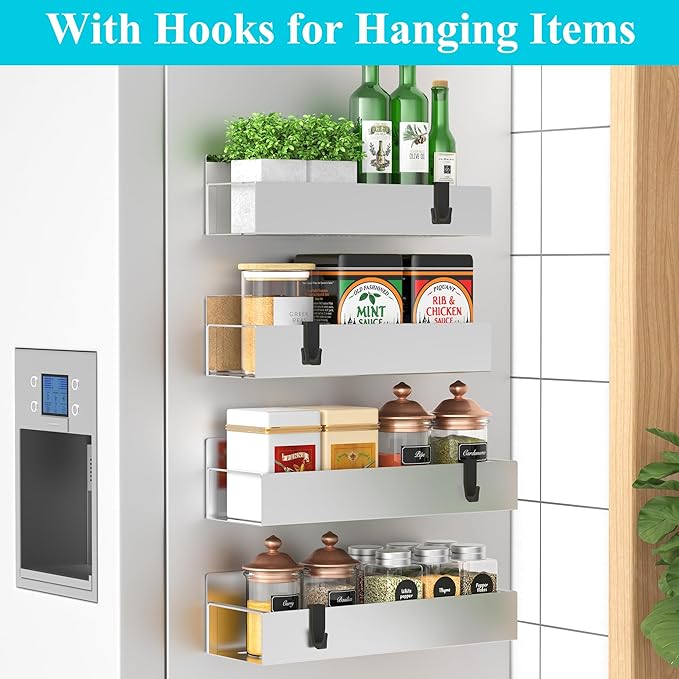 4 Pack Magnetic Spice Storage Rack Organizer for Refrigerator and Oven, Silver Fridge Organizers and Storage