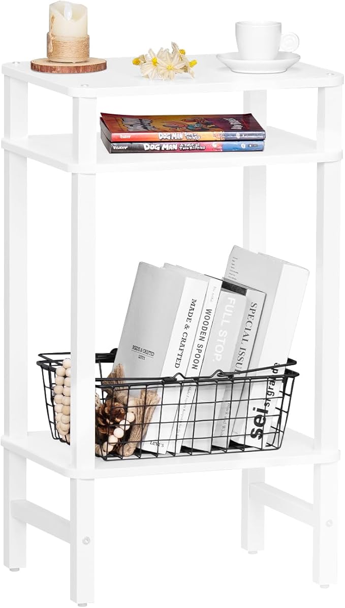 - Space-saving 3 Tier Storage: This 3 tier small side table, measures 11.81"D x 15.75"W x 27.56"H, is perfect for use as a side table or nightstand in a narrow space. The side table is not very spacious but still has enough room to add a lamp, picture frames, coffee and magazines to the top panel, where you can enjoy a short relaxation with a cup of coffee or tea, while the middle and lower tiers can help you organize more essentials