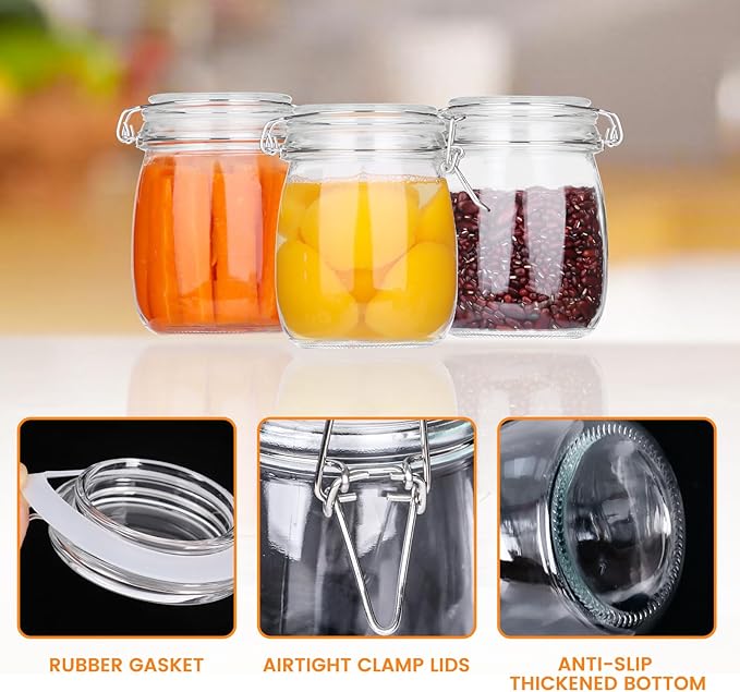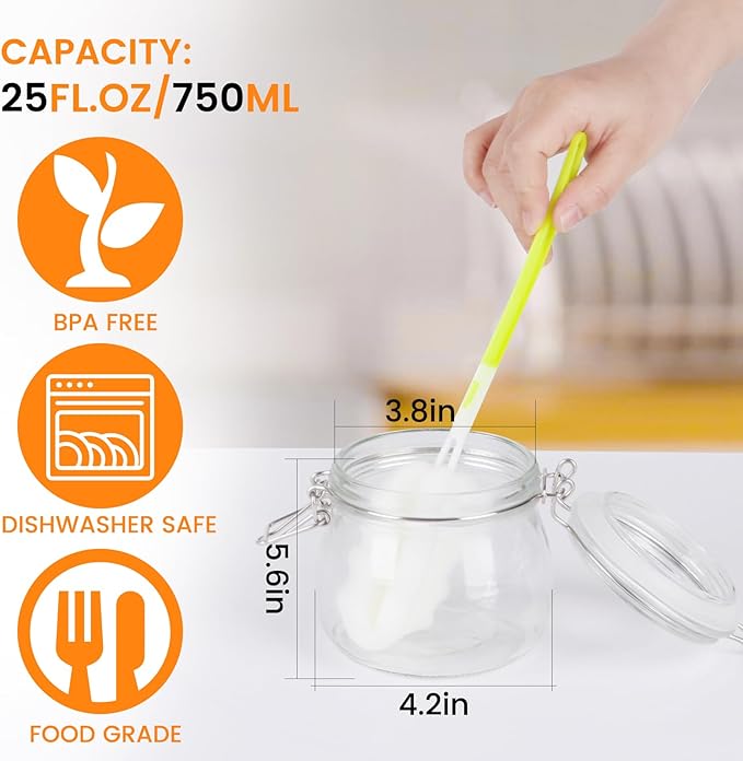 - SPACIOUS & PRACTICAL DESIGN: Measuring 25fl.oz/750ml with 3.8" wide mouth opening, these air tight glass storage jars effortlessly hold bulk ingredients while allowing easy access for scooping and cleaning