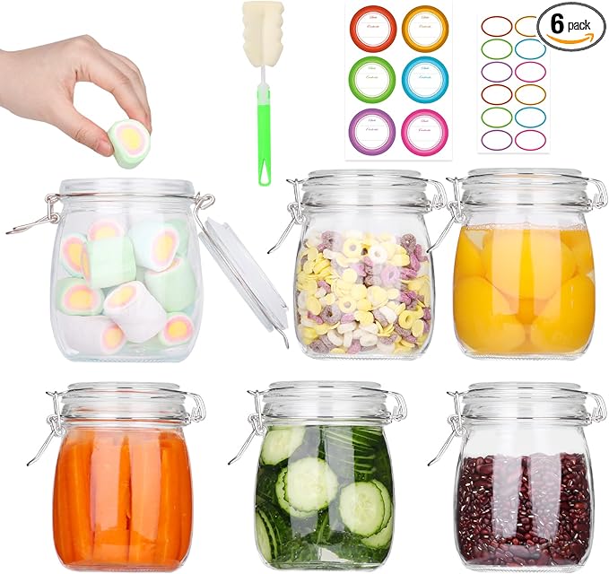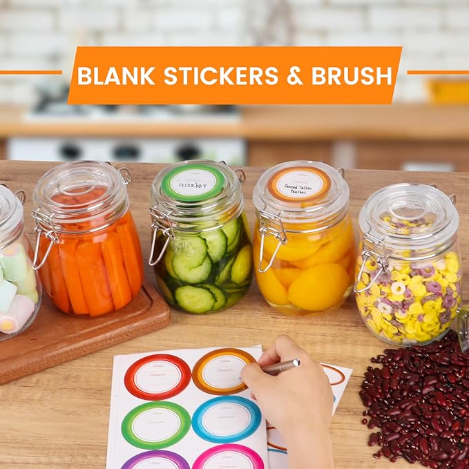 - COMPLETE STORAGE SOLUTION: Includes 6 jars + 18 decorative labels + bottle brush - backed by lifetime replacement guarantee for worry-free purchase