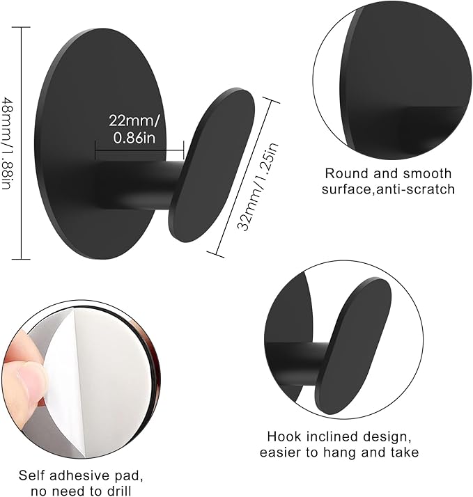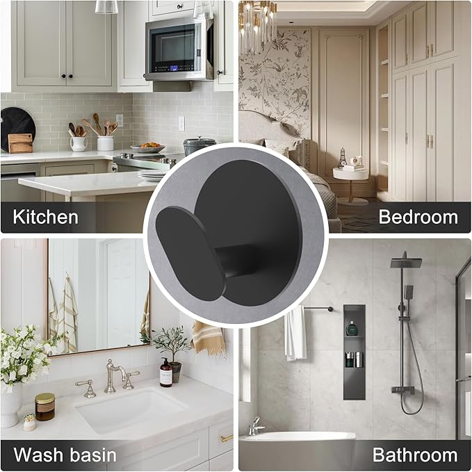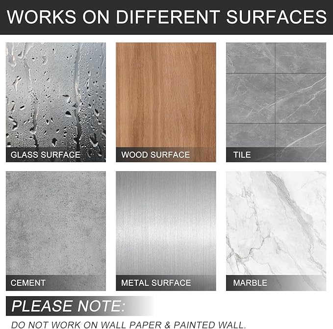 - Surface Compatibility: Wall Hooks mount securely on smooth surfaces like tile, glass, metal, wood, & marble. Avoid painted walls, wallpaper, limestone, & uneven textures.