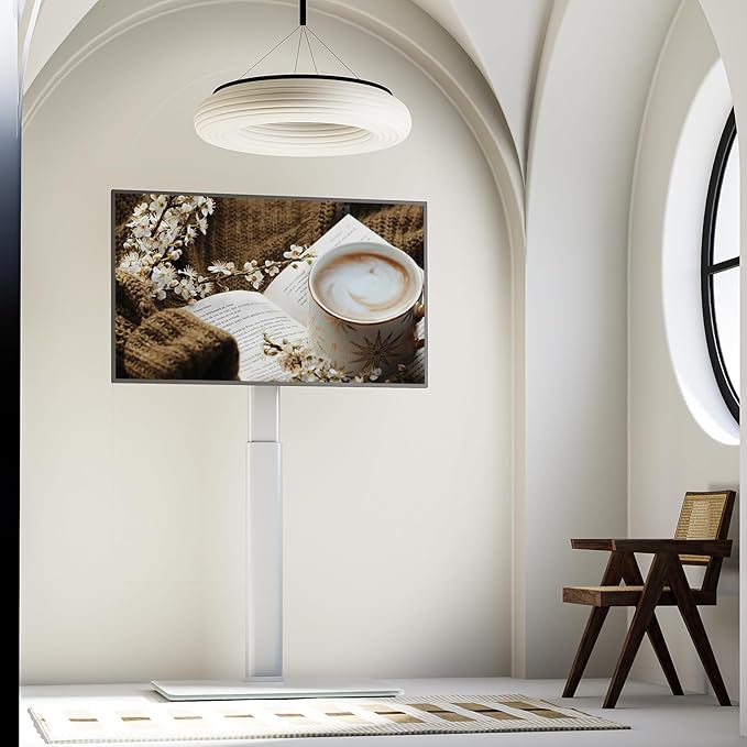 AX WABER Universal Floor TV Stand with Mount 70 Degree Swivel 9 Level Height Adjustable and Space Saving Design for Most 27 to 65 inch LCD, LED OLED TVs, Perfect for Corner & Bedroom White AX1006TW