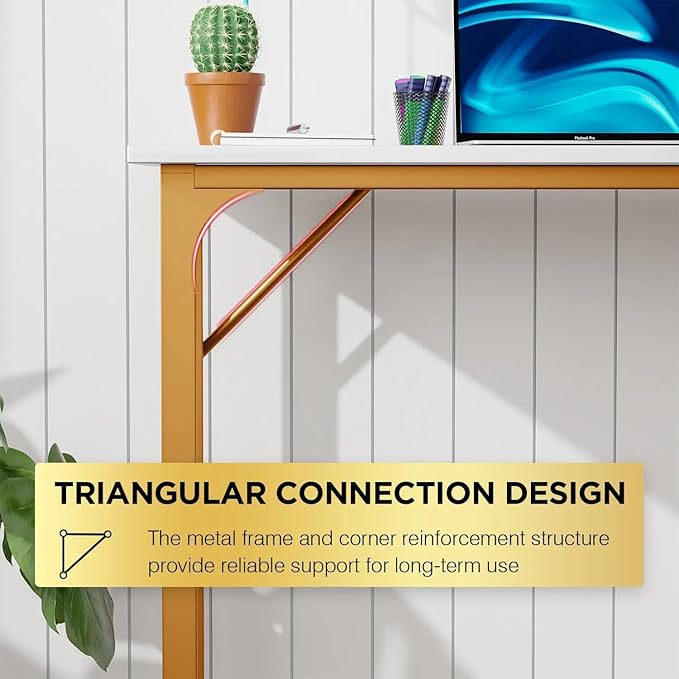 - 【Sturdiness】The writing desk is made of metal frame and thick engineered wood.The durable construction ensures stability and longevity, providing you with a reliable and sturdy surface for all your work and study needs.