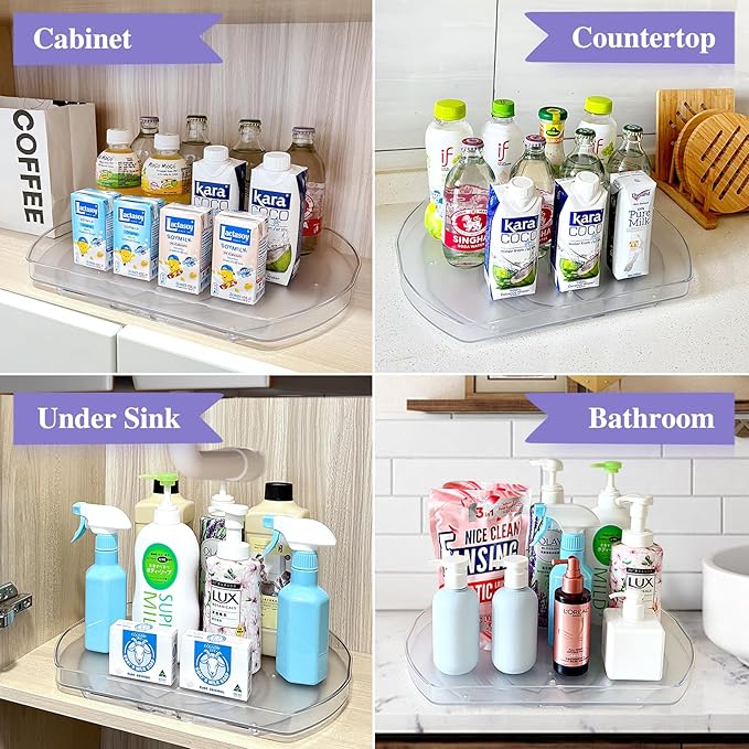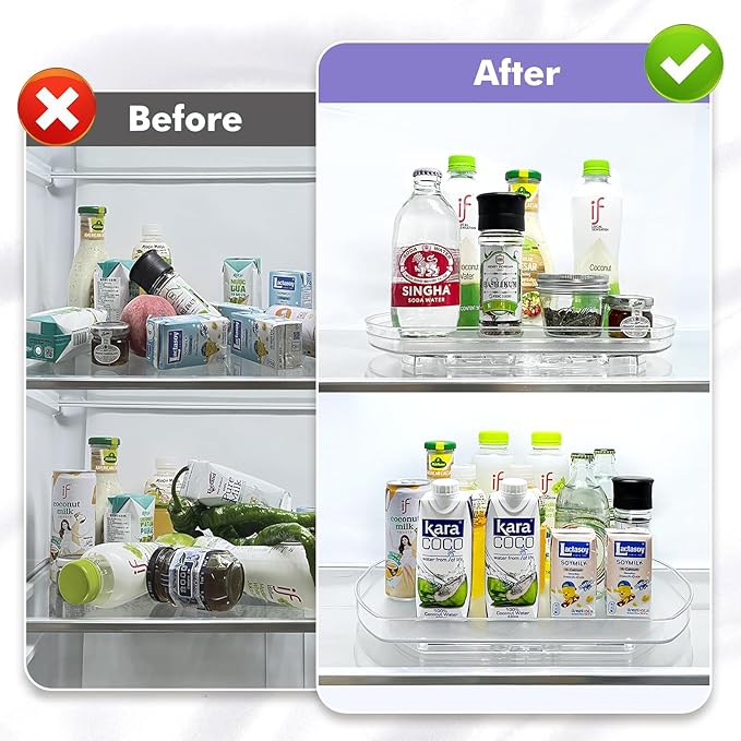 - SPIN TO STAY ORGANIZED: With this refrigerator turntable organizer, effortlessly access all items with a simple spin, keeping your foods neatly organized in one convenient place.