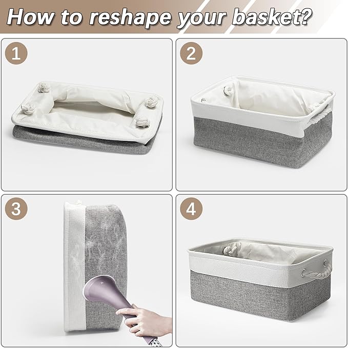- Portable & Collapsible: Crafted from premium linen fabric and reinforced with thickened EVA, this storage bin features a sturdy metal frame for durability. Soft cotton handles make it easy to carry, and it folds flat for space-saving when not in use