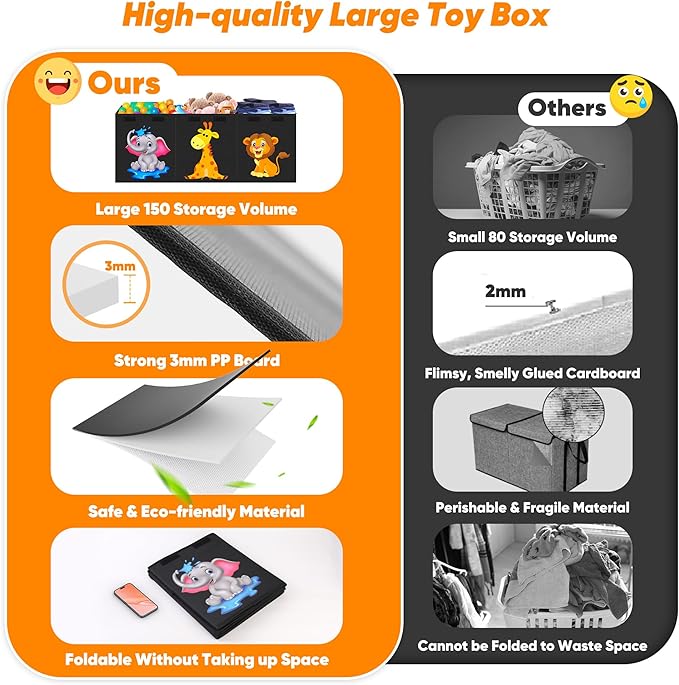 - 150L Large Toy Box: Our toy chest storage measures 40"x14"x16" and has a capacity of over 150L, which is large enough to hold a large number of stuffed animals, groceries, clothes, blankets and almost all plushies toys. With this large capacity toy box, always make your home tidy and clean