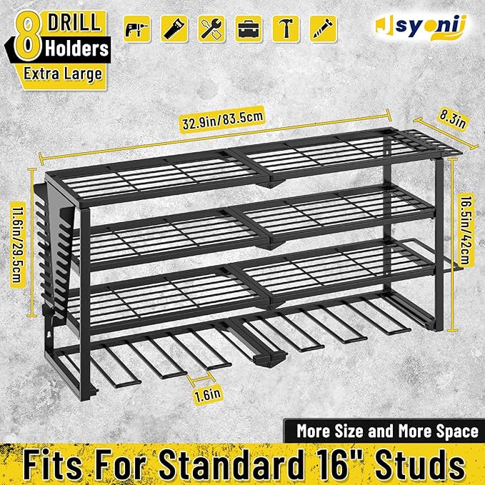 - DURABLE HEAVY-DUTY METAL CONSTRUCTION:This power tool storage rack is made from alloy steel. Its rust-resistant finish and sturdy frame provide exceptional durability and stability, it can hold up to 200 lbs without risk of detachment