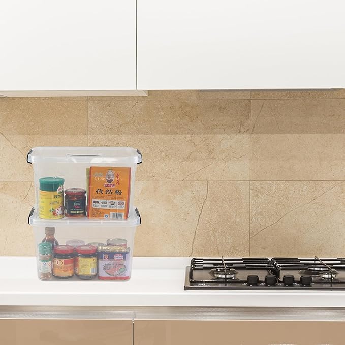 Hespama 4 Pack Clear Storage Bins with Handle, 12 Quart Plastic Lidded Organizer Box