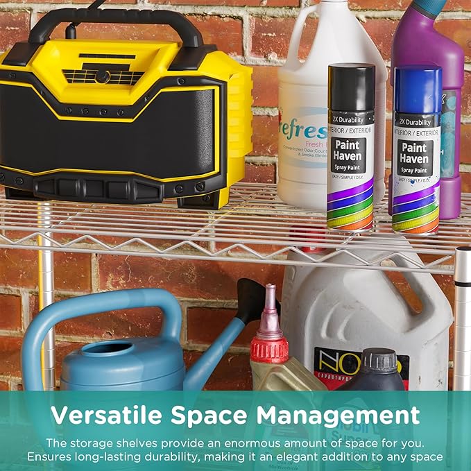 - 〖Sturdy and Durable〗: This shelving unit is constructed from high-quality V-shaped steel wire for maximum durability and stability. The storage rack is rust-proof and scratch-resistant finish ensures the shelf stays in great condition over time. Our storage shelves are built to last, providing you with a long-lasting storage solution for any environment.