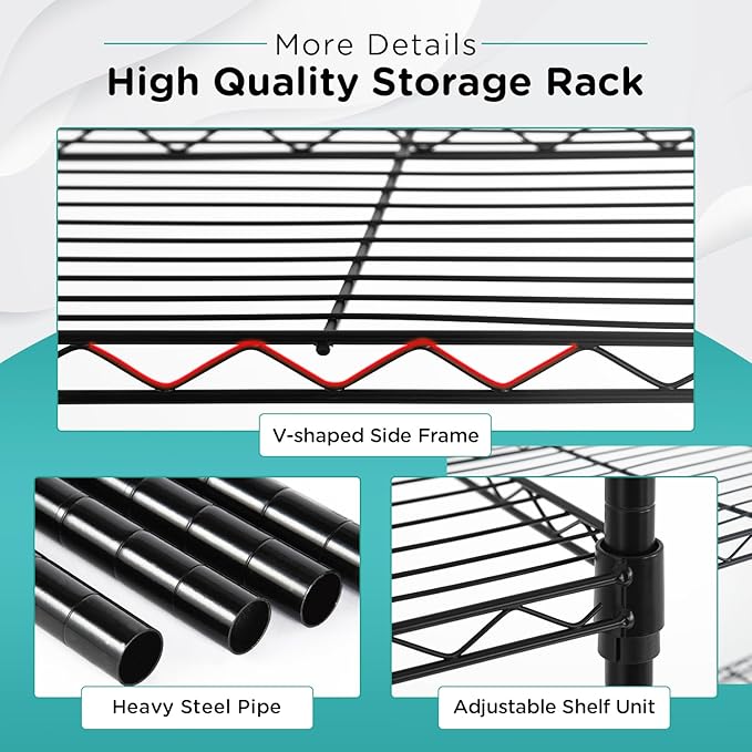 - 〖Sturdy and Durable〗: This shelving unit is constructed from high-quality V-shaped steel wire for maximum durability and stability. The storage rack is rust-proof and scratch-resistant finish ensures the shelf stays in great condition over time. Our storage shelves are built to last, providing you with a long-lasting storage solution for any environment.