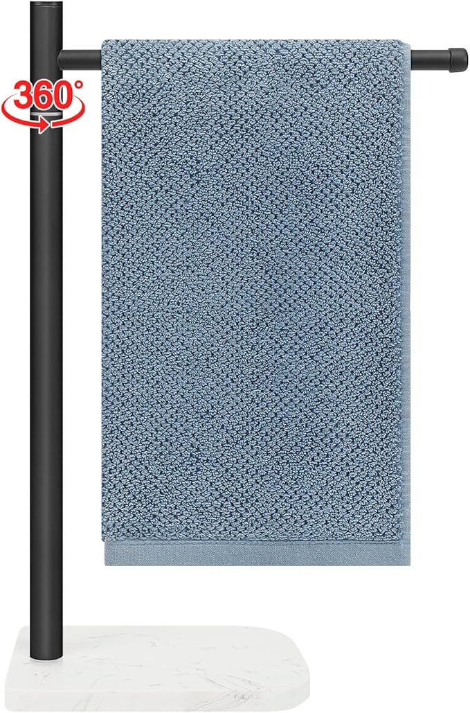 Hand Towel Holder, L-Shape Hand Towel Stand with Marble Base, Stainless Steel Swivel Hand Towel Rack Standing Towel Bar for Bathroom Kitchen Countertop, 1 Arm (Matte Black)