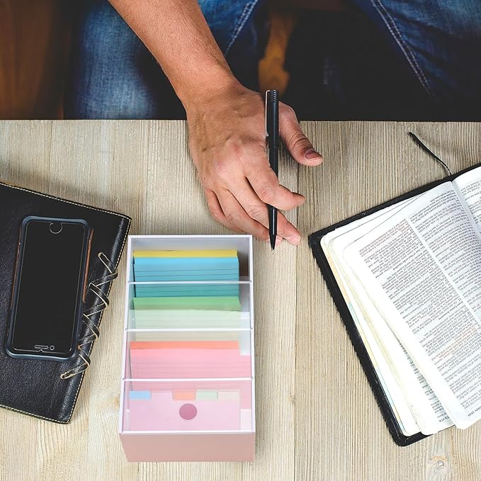 - Package and Size - The set incluldse a box, 10 index card diciders and 250 sticky notes in 5 colors, the index card holder measures 10x6x4 inches