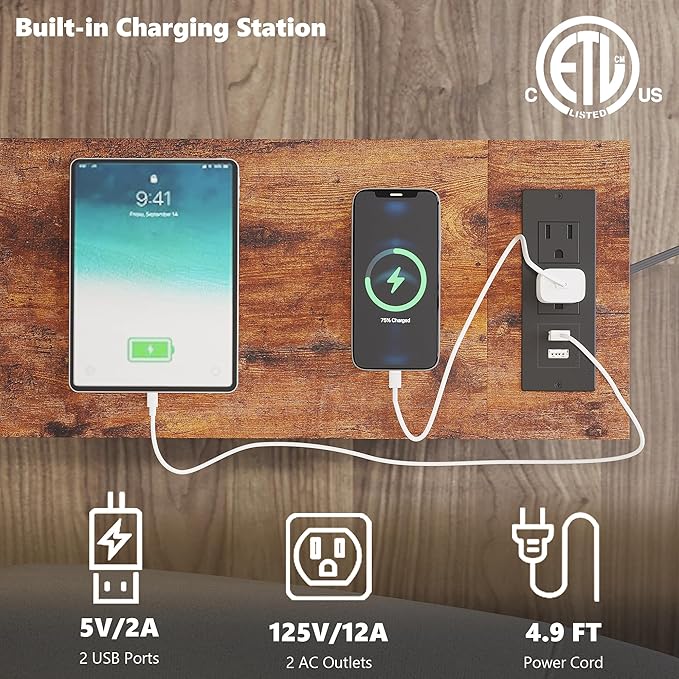 - ใ๐๐ฎ๐ข๐ฅ๐ญ-๐ข๐ง ๐๐๐ ๐๐ง๐ ๐๐ฎ๐ญ๐ฅ๐๐ญ๐ฌใThis slim side table features a charging station with 2 outlets and 2 USB ports๏ผyou can charge your phone, lamp, or game console at the same time. The 4.9 ft extension cord can help you charge freely without being limited by wall sockets.