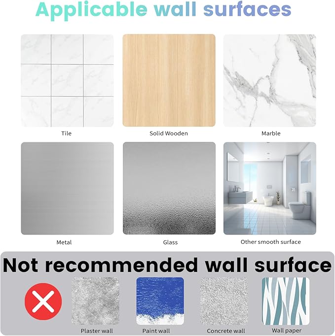 - Easy to install - no drilling required. Just clean the wall, peel off the protective film on the back of the product, attach the towel holder to the wall, and press for a few seconds. Wait for 24 hours after installation to start using. Note: The towel rack is suitable for smooth surfaces such as tiles, marble, metal, glass, wood, etc. It is not recommended to stick this towel rack on rough surfaces, such as limestone walls, wallpapers, painted walls, latex paint surfaces, etc