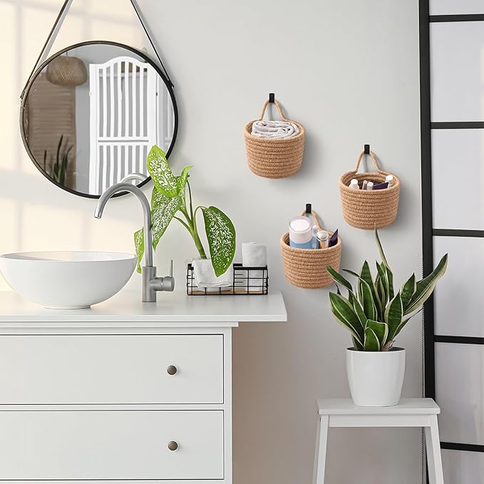 - Versatile Cute Size - The small size of these woven hanging bags (6.3" D x 4.7" H) makes them perfect for organizing various tiny tools. The set of three baskets can be used individually or together, offering convenient storage solutions for various needs.
