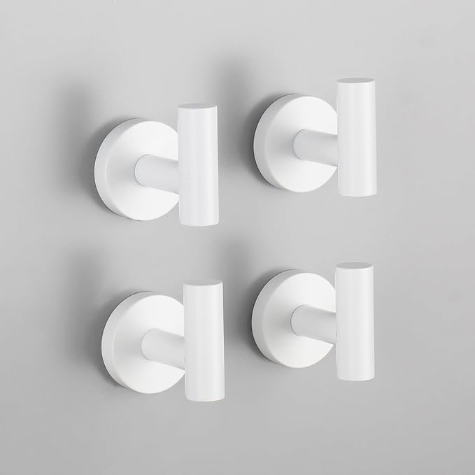 GERZWY Stainless Steel Towel Hook Wall Mounted Robe Coat Hook Heavy Duty Luxury Hooks for Bathroom Hotel 4 Pack, White