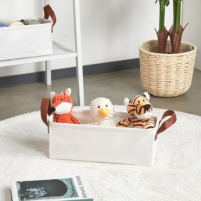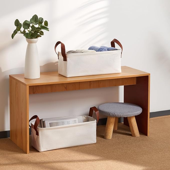 DULLEMELO Small Storage Bins, Fabric Storage Bins Closet Baskets for Organizing with PU Handles, Rectangle Closet Storage Bin with Metal Frame, Natural Color, 2-Pack