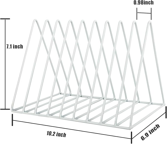- Great Space Saver - Size:10.2x7.1x6.9 inches, distance between each slot:0.98 inches. Triangle shape maintains great stability, 9 slots rack holds tons of stuff and doesn't take up too much space