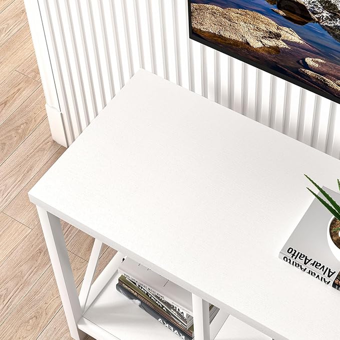 - Versatile TV Table: Designed with 3 tiers and 4 open compartments, white tv stand offers ample space for CDs, DVDs, cable boxes or books. Media console supports TV up to 55 inch, keeping living room, bedroom or entryway well-organized and clutter-free