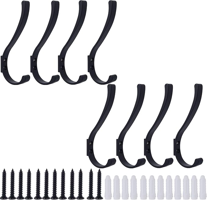 8 Pack Hanging Coat Hooks Wall Mount, Coat Hanger Wall Hangers, Metal Hooks for Hanging Heavy Duty, Screw in Hooks for Hanging Towels, Clothes, Backpack, Hat, Bag, Jacket, Key, Robe, Backpack Black