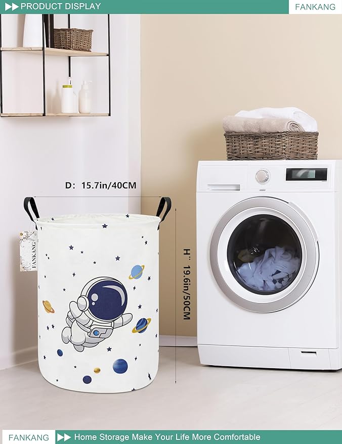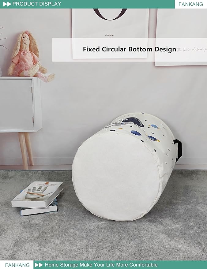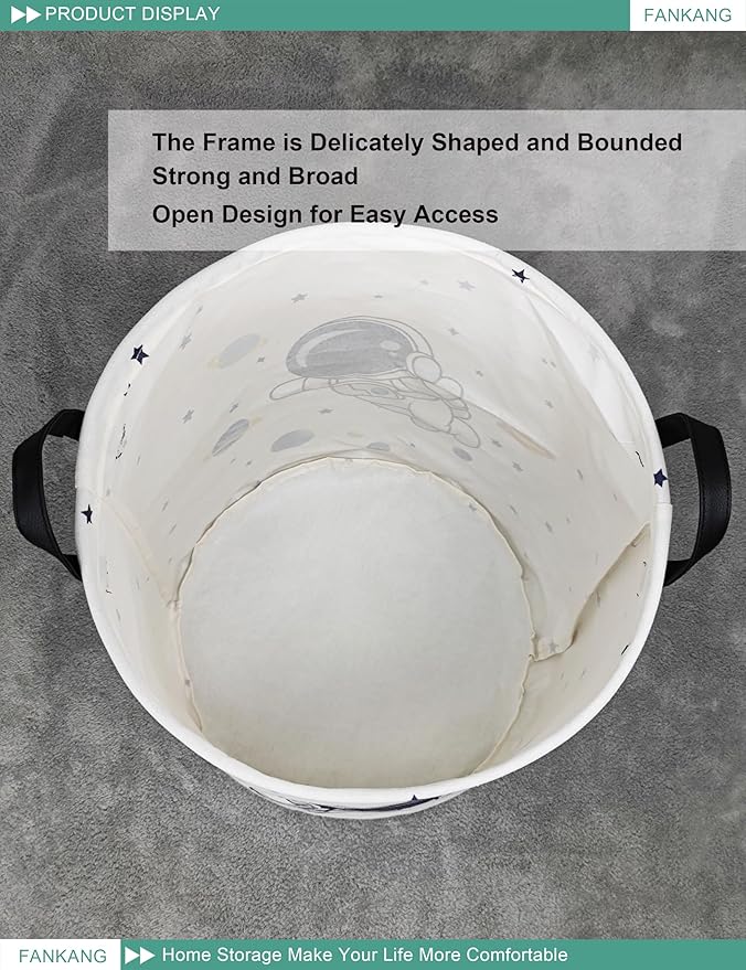 FANKANG Storage Basket, Nursery Hamper Canvas Laundry Basket Foldable with Waterproof PE Coating Large Storage Baskets for Kids Boys and Girls, Office, Bedroom, Clothes,Toys(Astronaut)