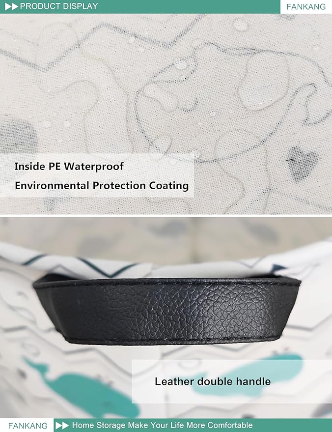 FANKANG Storage Basket, Nursery Hamper Canvas Laundry Basket Foldable with Waterproof PE Coating Large Storage Baskets for Kids Boys and Girls, Office, Bedroom, Clothes,Toys(Whales)