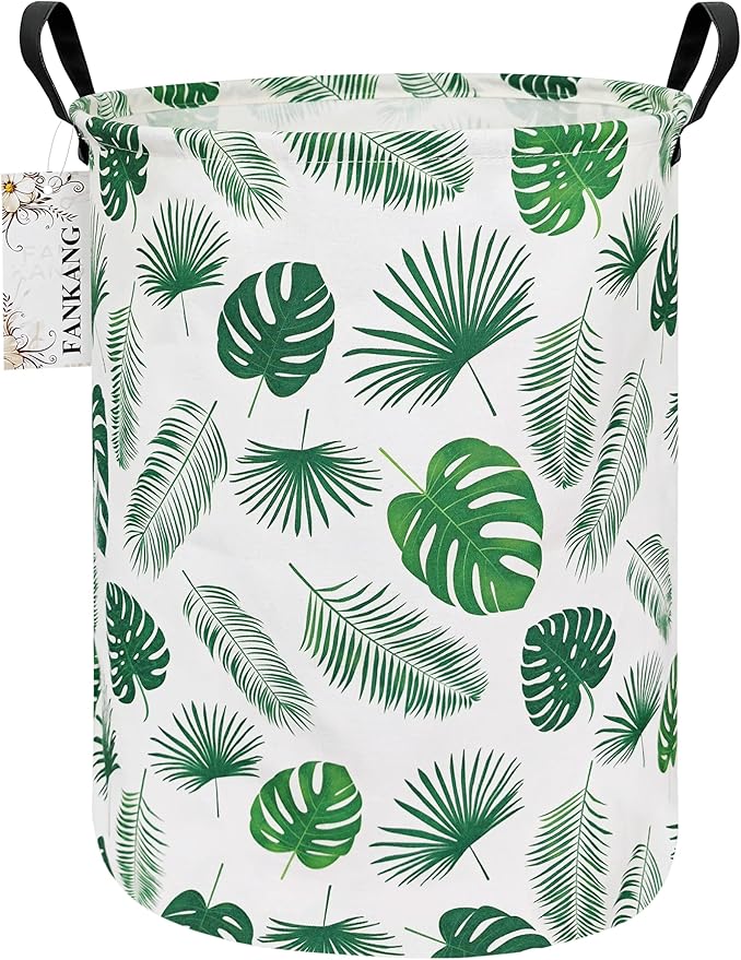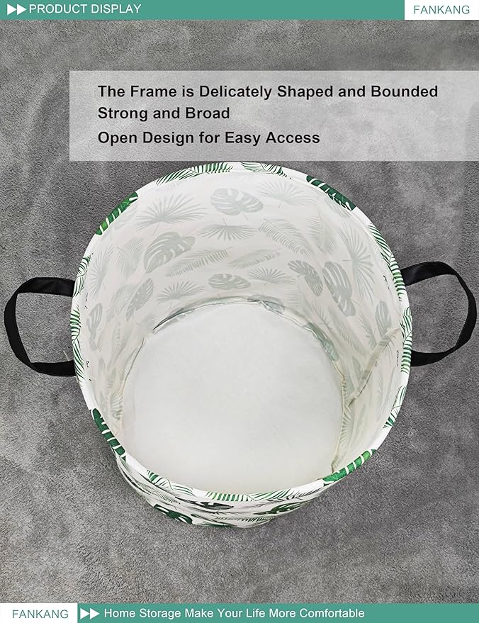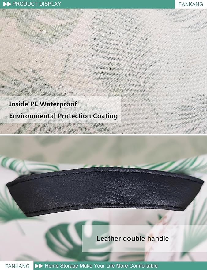 FANKANG Storage Basket, Nursery Hamper Canvas Laundry Basket Foldable with Waterproof PE Coating Large Storage Baskets for Kids Boys and Girls, Office, Bedroom, Clothes,Toys(Leaf)