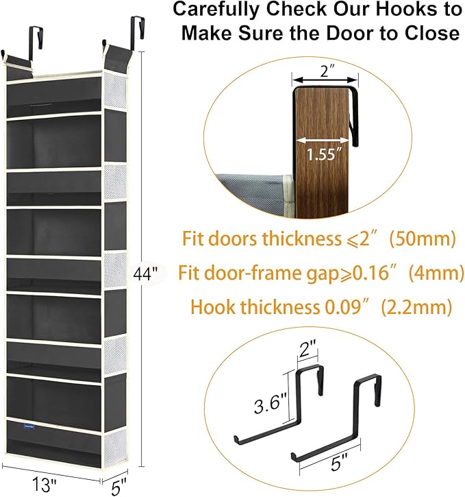 - 【STURDY AND DURABLE】The closet shelf organizers are sophisticated stitchings all around the bottoms, throughout ended up with topmost slots where steel hinges firmly enclasped on the back of door storage organizer, and likely stay flush with the door.