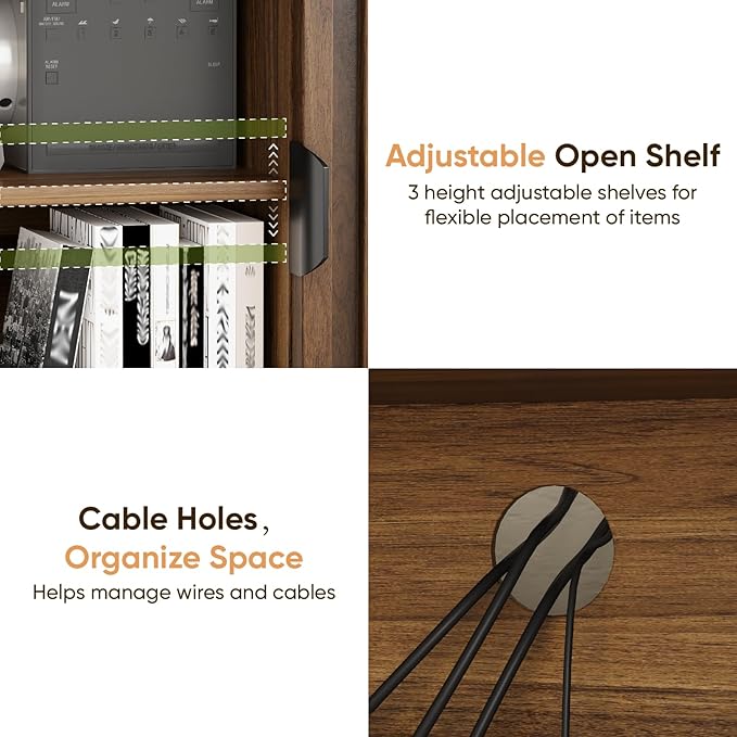 - 【Versatile, Practical Storage】The mid-century modern TV console offers two cabinets and three adjustable center shelves. Built-in wire holes enable easy, discreet cable management, allowing you to neatly store your belongings and maintain a clutter-free, polished look