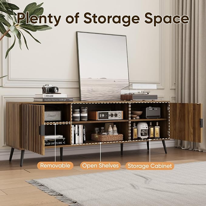 - 【Timeless Mid-Century Elegance】This walnut fluted TV stand seamlessly complements a wide range of American home decor styles, from classic to modern retro. Its refined walnut finish and streamlined design deliver a sophisticated, elegant presence that elevates any living space