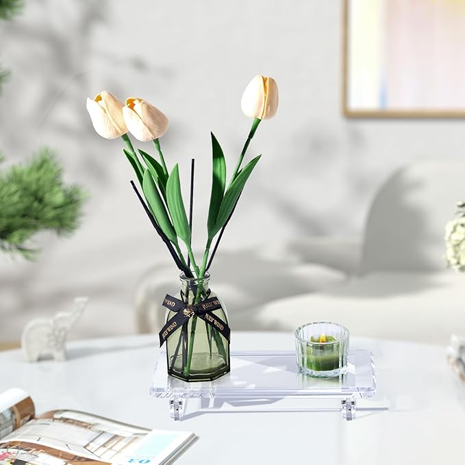 - Versatile Use for Organization : Use this acrylic tray organizer as a soap stand for kitchen sink, a soap dispenser tray,a perfume tray or a vanity tray for your dresser. lts adaptability makes it suitable forvarious items, including bathroom soap tray and candle riser display.