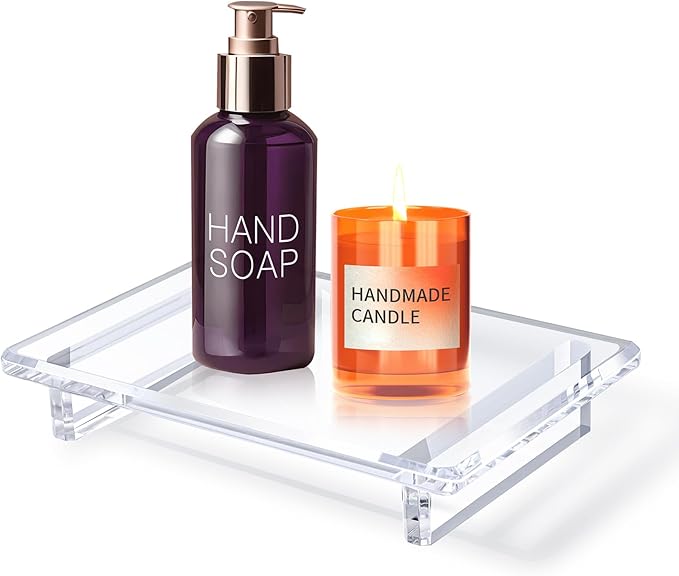 - 【Elegant & Functional Build】-Crafted from durable acrylic with diamond-cut edges, this sleek bathroom tray complements any decor. Perfect as a kitchen soap tray or vanity sink tray for a polished, modern look