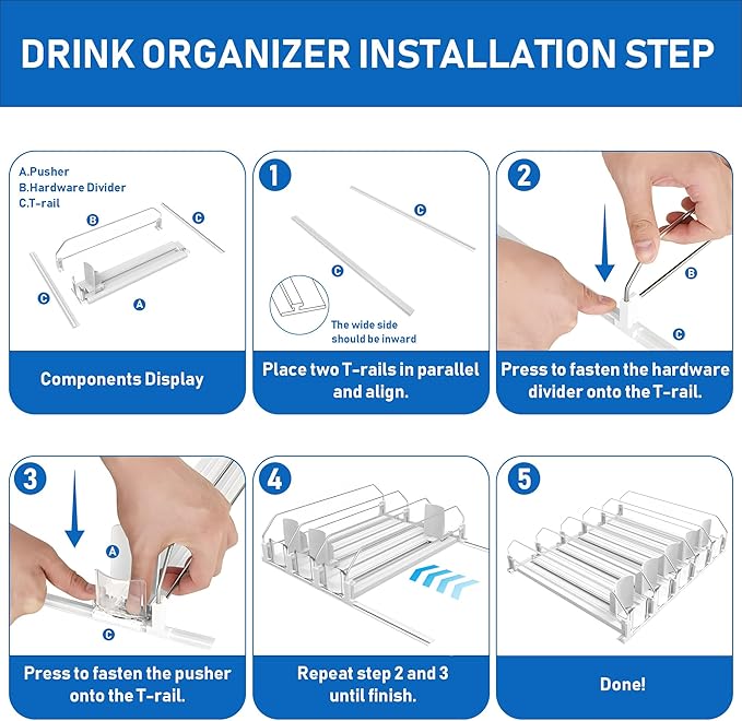 - Spacious Design: Our refrigerator drink organizer boasts a generous capacity that fits most sizes of drink cans and bottles. With a 5-row layout, it can store up to 25-30 cans.