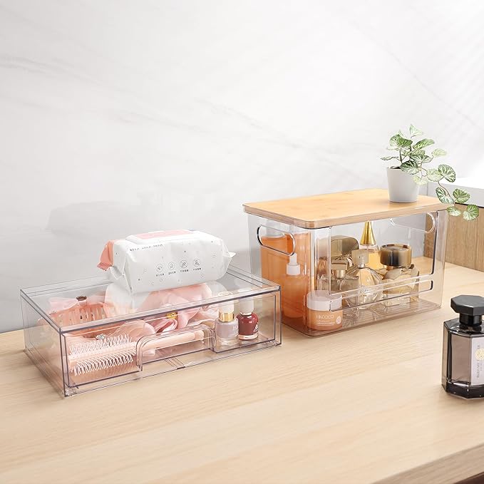 - HIGH QUALITY, FINE WORKMANSHIP: Trash bag dispenser is made of acrylic and bamboo lid, smooth edges, sturdy and durable. Transparent design allows you to see the best contents, easy to check the trash bag and replenish it at any time