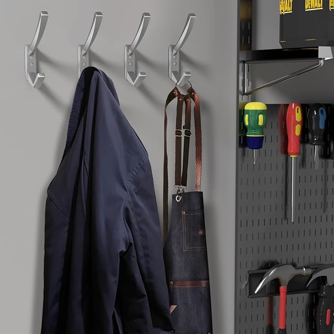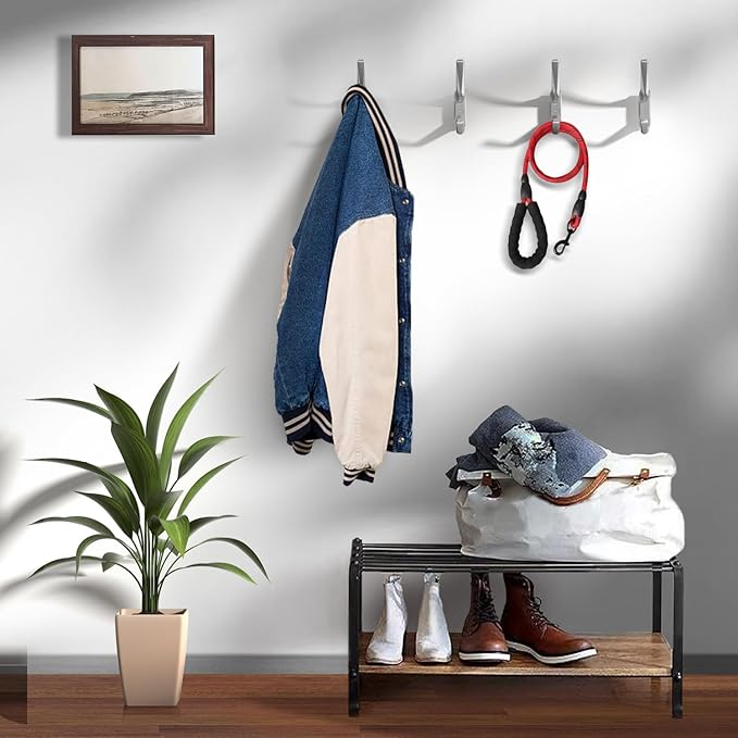 - Large Hooks for Hanging - The length of 5.7 inches and double hooks design make it ideal for hanging bulky winter coats, backpacks, swimwear, and bathrobes. One hook holds the jacket, and the other hangs the bag, keys, etc. You can hang twice as many items.