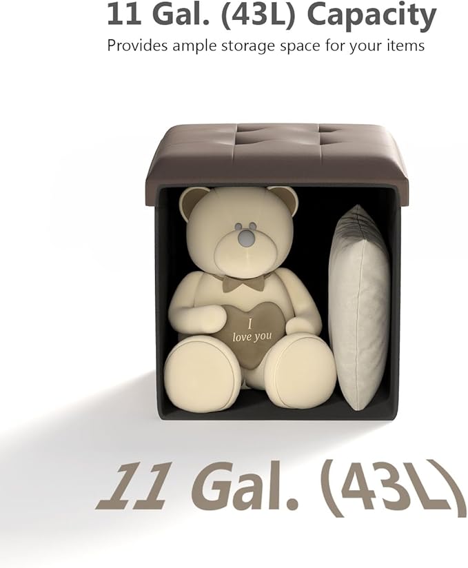 - [Plenty of Storage Space] This folding ottoman, sized 15”D x 15”W x 15”H (38 x 38 x 38 cm) with a total capacity of 11 gallons, can be used to neatly organize your bed sheets, pillows, blankets, magazines, and more