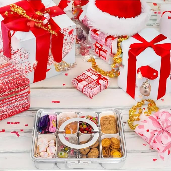 - Divided Box: The 8 Compartment Snack Container with Dual Handles is perfect for storing a variety of snacks and small portions of fruits or vegetables