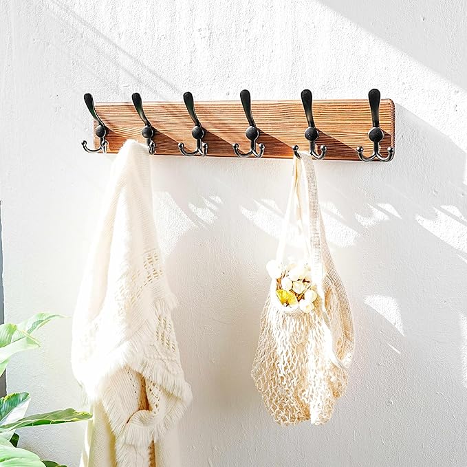 - 【24" LONG & HANG A LOT:】The wall hanger features 24” long wood board with 6 triple hooks, looking impressively heavy duty, providing ample hanging space.