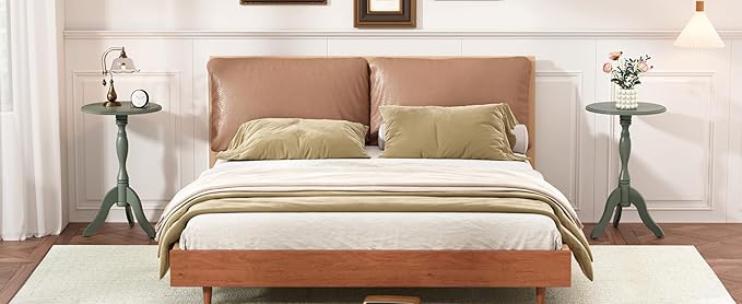 HLR Round Small End Table, Wooden Pedestal Side Coffee Tables, Vintage Accent Nightstand for Living Room, Bedroom, Entryway (2, Green)