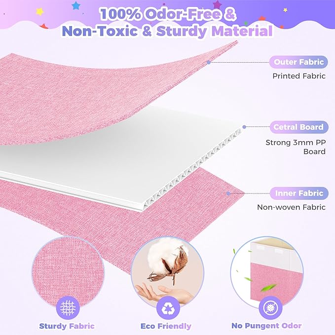 - Durable & Sturdy Design: Kids toy box is made from 100% odorless,non-toxic premium linen fabric and thickened PP cardboard, which is durable, breathable and non-irritation. 3mm high-quality strong PP board can withstand a weight of 30-50KG, which is enough to prevent deformation of the four sides.
