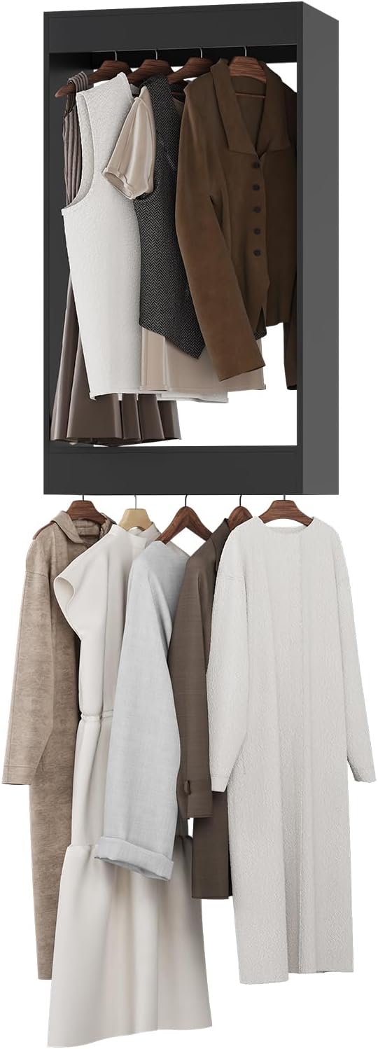 Double Hanging Closet Unit, Modular Closet System, Wood Closet System Organizer with Storage for Walk In Closets, Clothing Rack Wardrobe Closet for Hanging Clothes, Bedroom, Black, 28.5"W