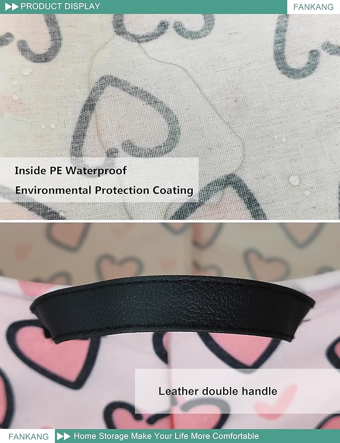 FANKANG Storage Basket, Nursery Hamper Canvas Laundry Basket Foldable with Waterproof PE Coating Large Storage Baskets for Kids Boys and Girls, Office, Bedroom, Clothes,Toys(Pink Love)