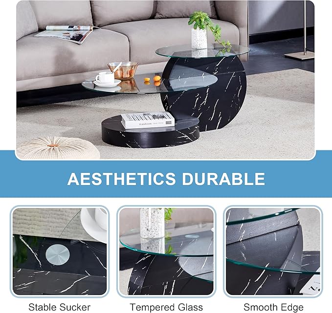 Glass Coffee Tables for Living Room Round Coffee Tables Modern Double Layer Round Table Circle Coffee Table for Small Space Home Office (35.4 Inch Black)
