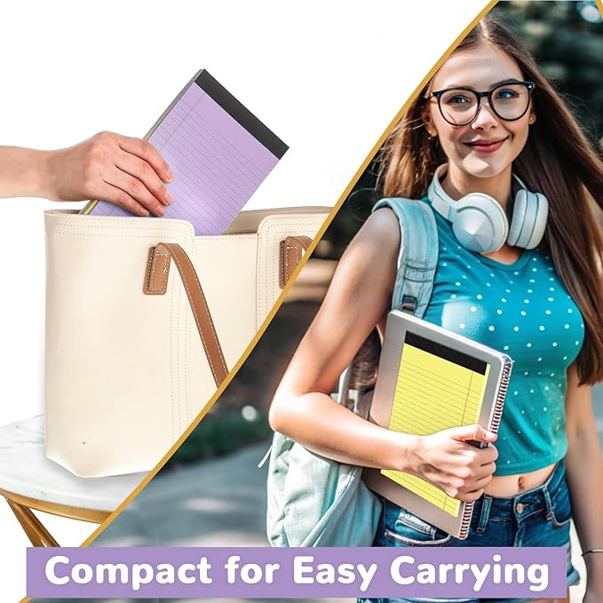 - 【4 Colored Legal Pads】These 5x8 inch colored legal pads come in 4 different colors: white, blue, purple, yellow. The writing pad can easily classify your notes and keep them organized to meet your different needs.