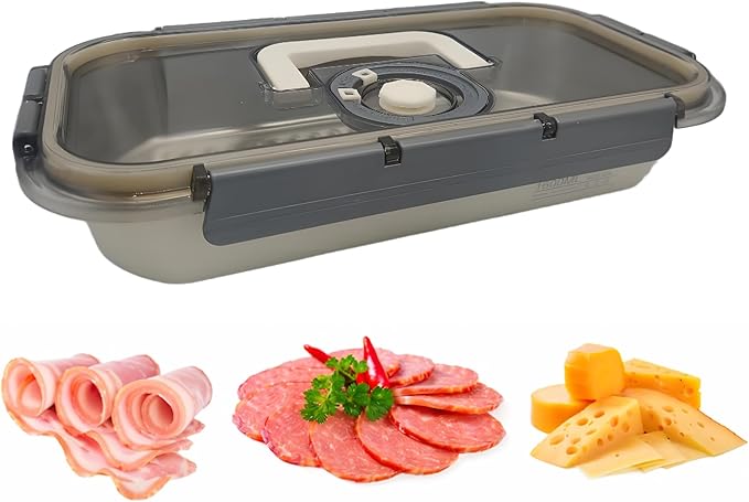 - Warm Creamy White Aesthetic + Stackable Design Ditch cold metal boxes! Our deli meat container features a soft Creamy White finish for kitchen elegance. Space-saving stackable shape fits fridges, RVs, or picnic baskets.