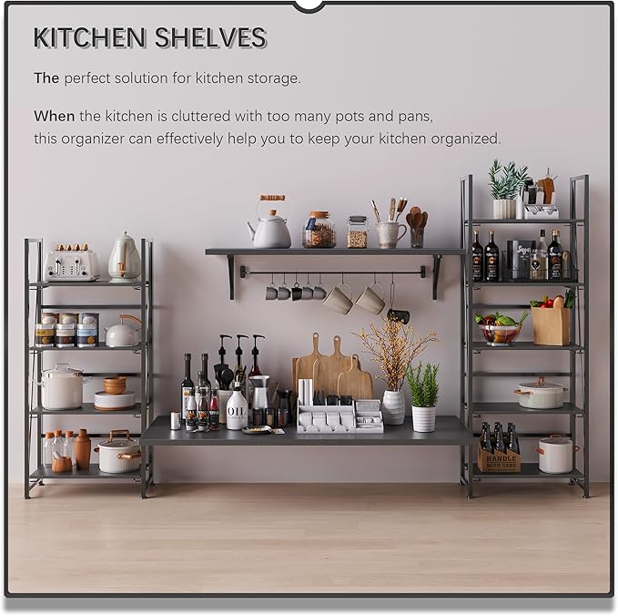 - 【Simplicity and practical folding bookshelf】it is a industrial style design with simplicity and retro, which can not only make your room in good order, but also occupy few space. You can put it in any space of your home, such as living room, bedroom, corridor, kitchen, balcony, etc