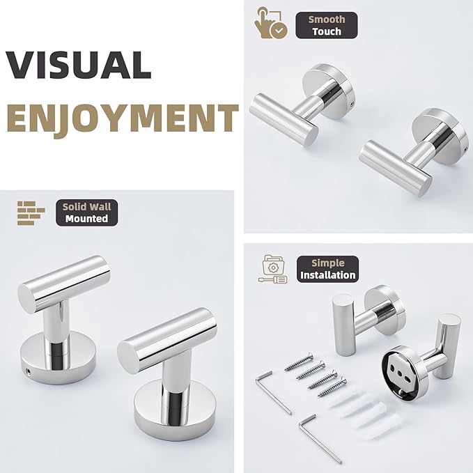 - PREMIUM 304 STAINLESS STEEL: hand towel hook with high rustproof performance, not afraid to use in bathroom, hallway, kitchen. Sturdy construction make it has long service life