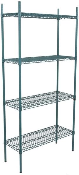 14" x 36" NSF Green Epoxy 4-Shelf Kit with 74" Posts, Heavy Duty Storage Shelving, Wire Shelving Kit, NSF Commercial Storage Rack Unit