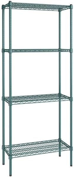 14" x 30" NSF Green Epoxy 4-Shelf Kit with 74" Posts, Heavy Duty Storage Shelving, Wire Shelving Kit, NSF Commercial Storage Rack Unit